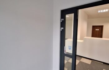 Odnowione ściany, przywrócona estetyka podłogi oraz jednolita, stonowana kolorystyka nadały wnętrzu profesjonalny charakter.